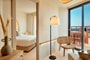 For those celebrating a romantic escape or special occasion, the Honeymoon Junior Suite Sea View offers an intimate sanctuary with an unforgettable backdrop. The suite exudes elegance, featuring a luxurious double bed and a cozy sofa bed, perfect for small families or couples. Enjoy breathtaking views of the shimmering pool and feel the romance of this dreamy space. Every detail of this suite is designed to make your stay extraordinary, whether you’re lounging in the chic interior or sipping champagne by the pool as the sun sets.